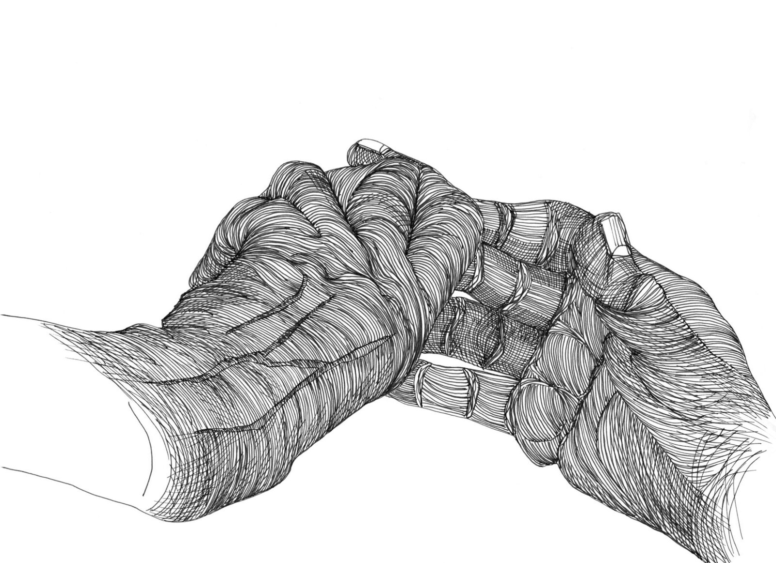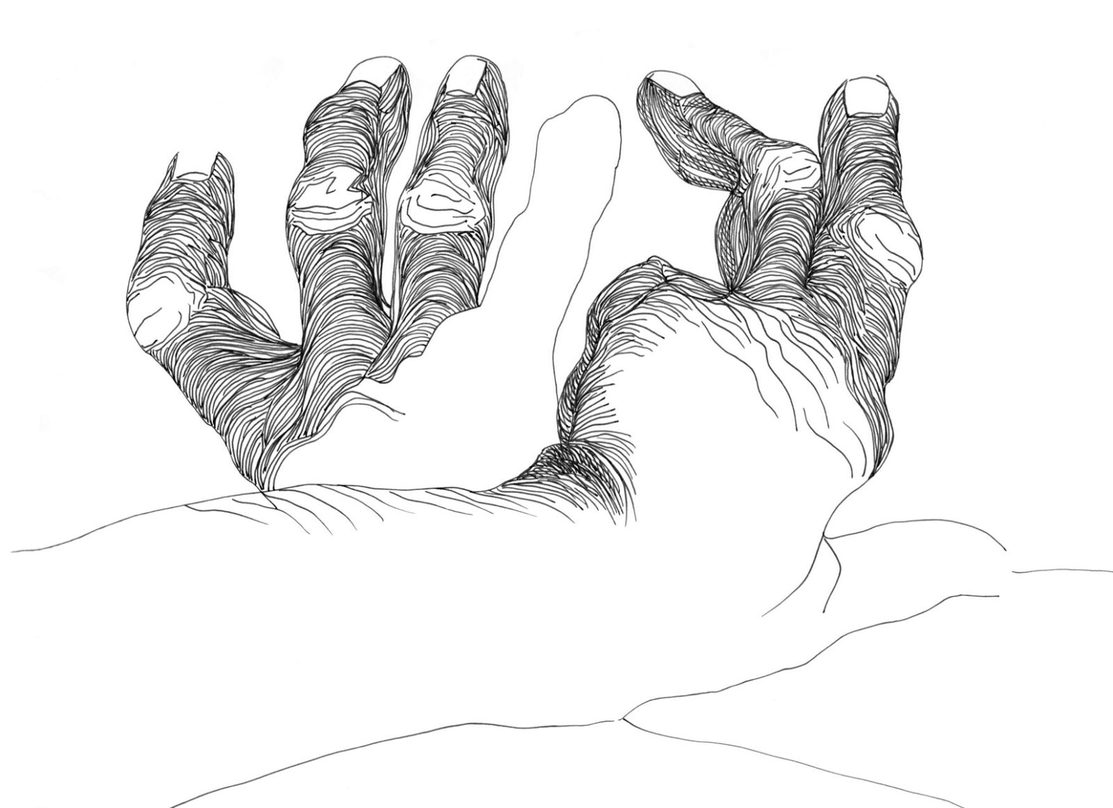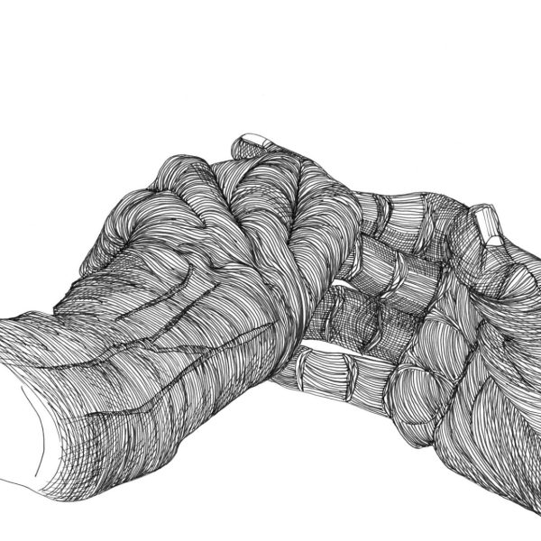 Daily drawings by the two artists lie at the heart of this exhibition: Tineke Bruijnzeels’ project ‘One more line a day’ using a wide variety of materials and Cally Trench’s ‘Left Hand, Right Hand’ drawings in ink. Both projects reveal the passage of time, and focus on the unit of the day – the most important measure of time in our lives, the unit that governs our routines of waking, sleeping, eating and work.